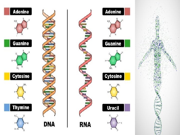 Staining used for N. A � Feulgen's reaction: determine the amounts of DNA. � Methyl Green Pyronin Stain to determine DNA and RNA � Acridine orange: The fluorescence is yellow green if the complex contains DNA and redorange if it contains RNA.