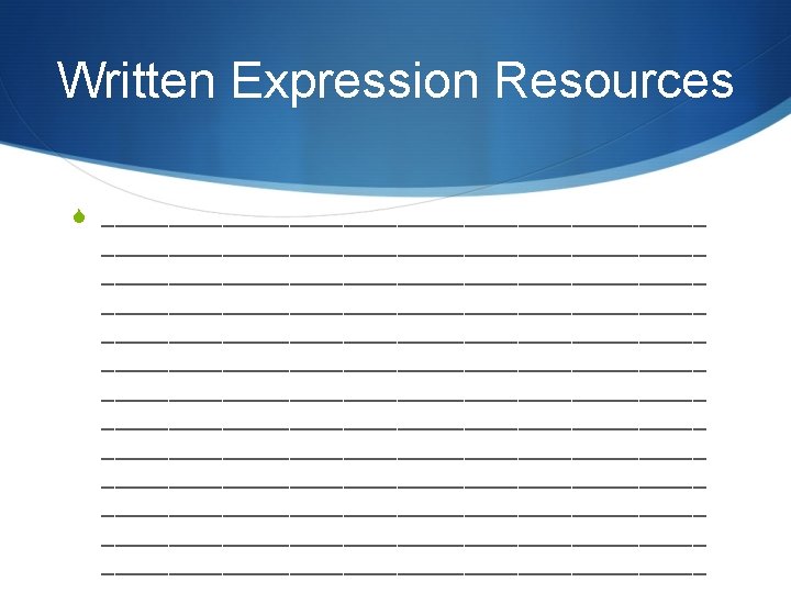 Written Expression Tool Suggestions S Word processing software with grammar and spell checker S Printed or digital dictation and/or thesaurus S Word wall/word bank S Writing templates S Graphic organizers S Speech to Text S Picture prompts or symbol support S Checklist for steps of writing S Word prediction software S Rubrics S Lists of transition words or phrases HOME