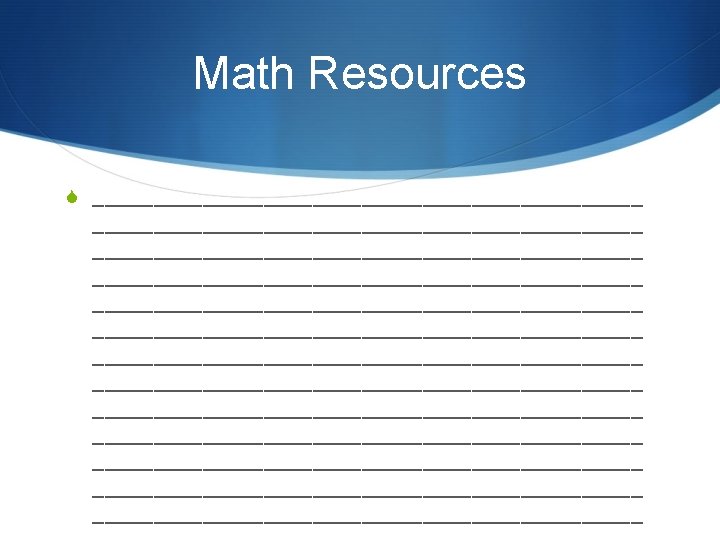 Math Resources S Manipulatives/Abacus S Number Lines S Math Fact Sheet S Graph Paper/Modified Paper S Calculators S Videos/Podcasts/Pencasts S Software for practice/instruction HOME