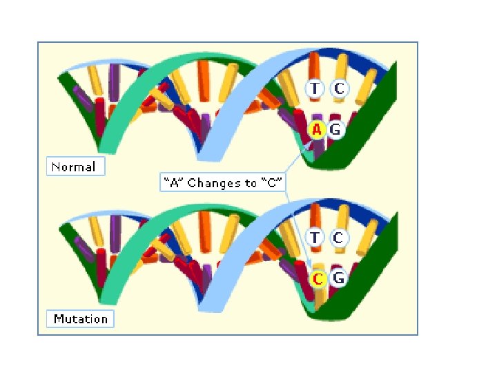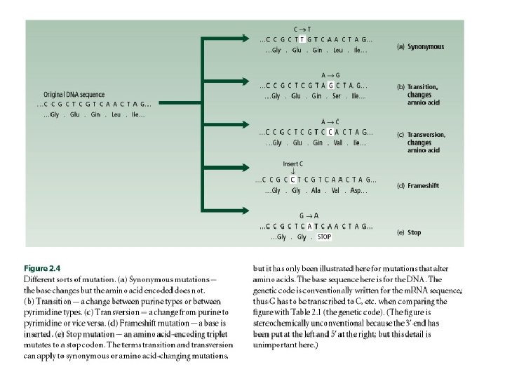 Mutation • Point mutation – Synonymous – Transition – Transversion • Frame-shift mutation • Stop mutation • Translocation • Fusion