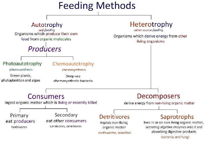 Food webs show all of the feeding relationships within a habitat.