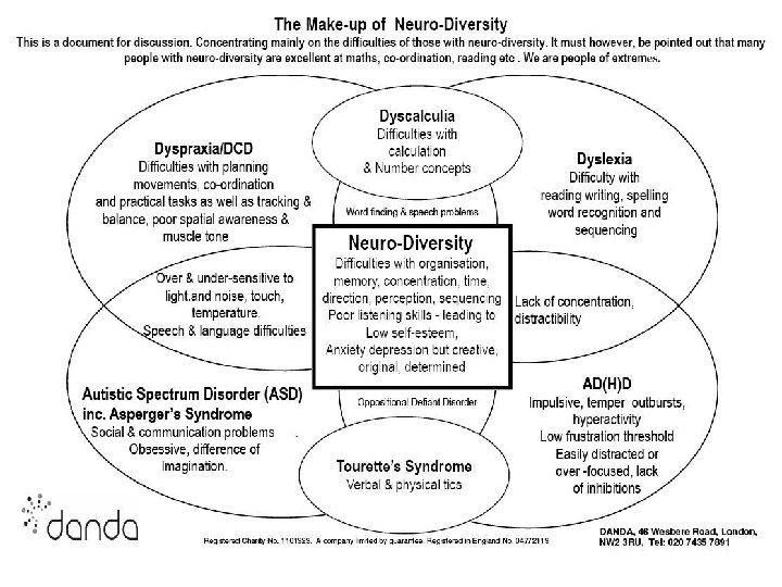 Sp. LD and the whole person The high proportion of co-occuring Sp. LD conditions in individuals and the high number of shared characteristics across different labelled conditions suggests that the labels themselves may be artificial. The degree of crossover can make identification of conditions difficult. Professor Amanda Kirby, University of Wales discusses this difficulty and recommends working with the “whole person” focusing on individual strengths and adjusting for individual weaknesses: http: //www. dystalk. com/talks/57 -dyslexia-dyspraxia-amp-overlappinglearning-difficulties