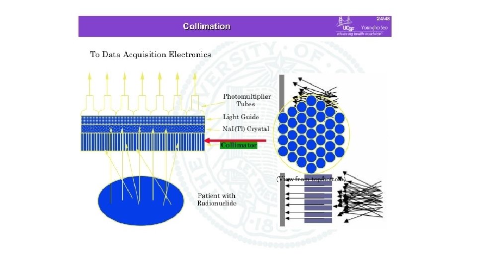KOLİMATÖR • Vücuttan her yöne yayılan gama ışınlarından sadece belirli bir yönden gelenleri geçirerek sintilasyon kristali üzerine düşürülmesini sağlar. • Diğer yönlerden gelen fotonlar ise emilir. • Genellikle emilimi arttırmak için kurşun veya tungstenden yapılır.