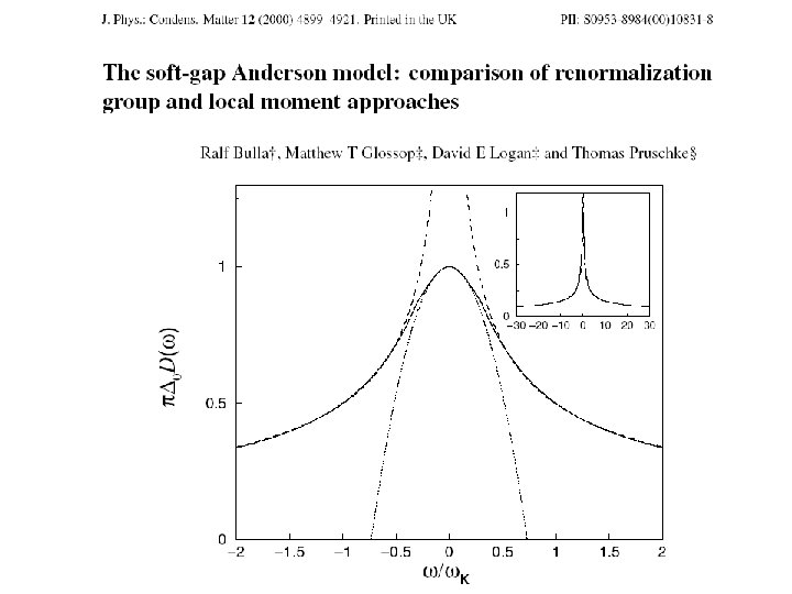 Arguments: • Kondo model features characteristic logarithmic behavior, i. e. , as a function of T, all quantities are of the form [ln(T/TK)]-n. • Better fit to the NRG data than the Doniach-Šunjić form. (No constant term has to be added, either. )