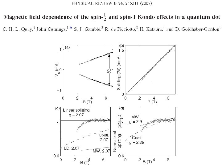Effect of the magnetic field: resonance splitting Ti atom S=1/2 A. F. Otte et al. , Nature Physics 4, 847 (2008)