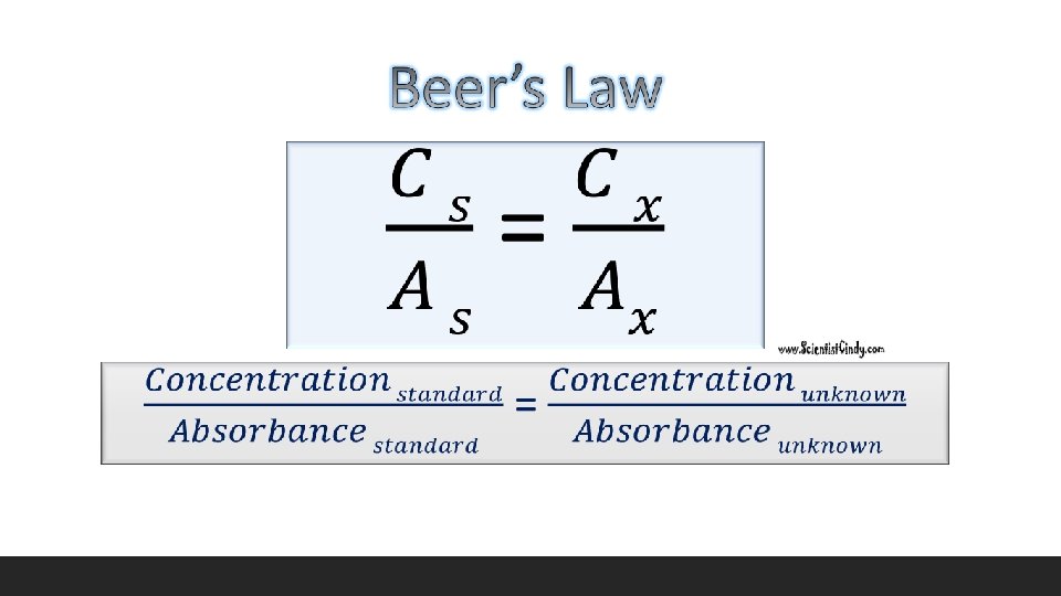Use Beer’s Law to Confirm Your Answer Pick one of the samples of Albumin with a KNOWN concentration. Sample Absorbance The sample having the KNOWN concentration of 2 g/dl had an absorbance measuring 0. 015. The sample with the UNKNOWN concentration of 2 g/dl had an absorbance measuring 0. 0975.