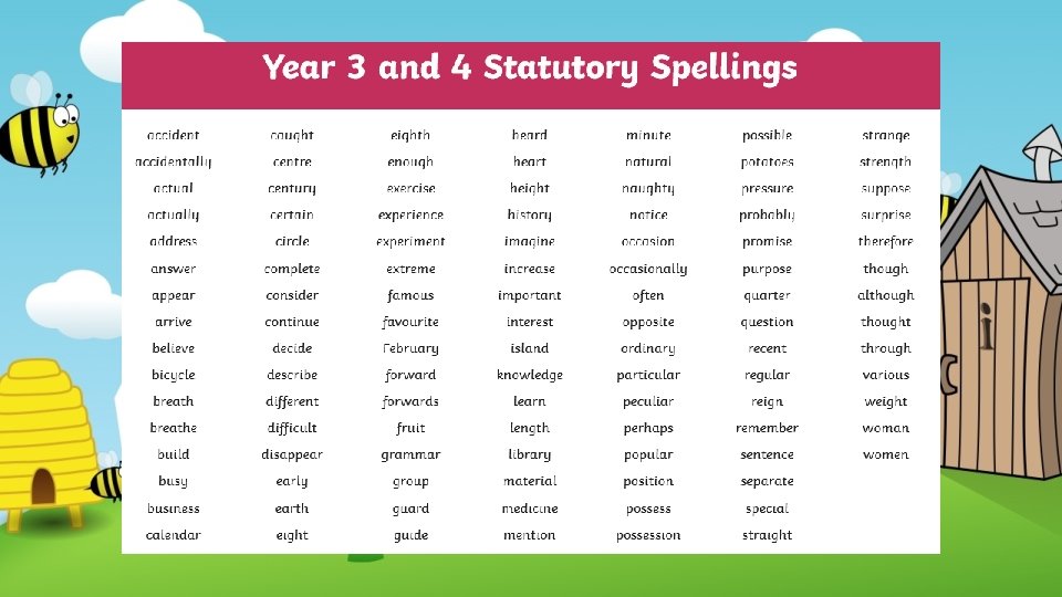 Spelling lists – Stage 4 19. Spelling Rules: The ‘au’ digraph 20. Spelling Rules: The suffix ‘-ion’ when the root word ends in ‘t’ or ‘te’ then the suffix becomes ’tion. ’ 21. Spelling Rules: The suffix ‘-ion’ becomes ’-ssion’ when the root word ends in ’ss’ or ‘mit. ’ 22. Spelling Rules: The suffix ‘-cian’ used instead of ‘-sion’ when the root word ends in ’c’ or ‘cs’ 23. Spelling Rules: Adding ‘-ly’ to create adverbs of manner. These adverbs describe how the verb is occurring. 24. Challenge Words 25. Spelling Rules: Homophones – words which have the same pronunciation but different meanings and/or spellings. Spelling Rules: The suffix ’-ation’ is added to verbs to form nouns. 26. Spelling Rules: The /s/ sound spelled c before ’i’ and ‘e’. 9. Spelling Rules: Adding –ly to adverbs. Remembering words ending in ‘-y’ become ‘-ily’ and words ending in ‘–le’ become ‘–ly. ’ 27. Spelling Rules: Some words have similar spellings, root words and meanings. We call these word families. ’sol word family’ and ‘real word family’ 10. Spelling Rules: Adding ‘-ly’ to to turn an adjective into an adverb when the final letter is ‘l. ’ 28. 11. Spelling Rules: Word with the ’sh’ sound spelled ch. These words are French in origin. Spelling Rules: Some words have similar spellings, root words and meanings. We call these word families. ’phon word family’ and ‘sign word family’ 12. Challenge Words 29. Spelling Rules: Prefixes – ’super-’ ‘anti’ and ‘auto. ’ 13. Spelling Rules: Adding the suffix ‘–ion. ’ When the root word ends in ’d, ’ ‘de’ or ‘se’ then the suffix ’ -ion’ needs to be ‘-sion. ’ 30. Spelling Rules: The prefix bi- meaning two. 31. Revision – spelling rules we have learned in Stage 4. 14. Spelling Rules: Adding the suffix –ous. ’ Sometimes the root word is obvious and the usual rules apply for adding suffixes beginning with vowel letters. Sometimes there is no obvious root word though. 32. Revision – spelling rules we have learned in Stage 4. 33. Revision – spelling rules we have learned in Stage 4. 15. Spelling Rules: The suffix ‘-ous. ’ The final ‘e’ of the root word must be kept if the sound of ‘g’ is to be kept. 34. Revision – spelling rules we have learned in Stage 4. 16. Spelling Rules: The ‘ee’ sound spelled with an ‘i. ’ 35. Revision – spelling rules we have learned in Stage 4. 17. Spelling Rules: The suffix ‘-ous. ’ If there is an ‘ee’ sound before the ’-ous’ ending, it is usually spelled as i, but a few words have e. 36. Revision – spelling rules we have learned in Stage 4. 18. Challenge Words 1. Spelling Rules: These words are homophones or near homophones. They have the same pronunciation but different spellings and/or meanings. 2. Spelling Rules: The prefix ’in-’ can mean both ‘not’ and ‘in’/’into. ’ In these spellings the prefix ’in-’ means ‘not. ’ 3. Spelling Rules: Before a root word starting with l, the ‘in-’ prefix becomes ‘il-’. Before a root word starting with r the prefix ‘in-’ becomes ’ir-’ 4. Spelling Rules: The prefix ‘sub-’ which means under or below. 5. Spelling Rules: The prefix ‘inter-’ means between, amongst or during. 6. Challenge Words 7. Spelling Rules: The suffix ’-ation’ is added to verbs to form nouns. 8.