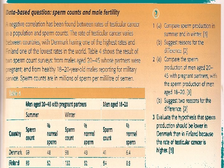 Exit Slip • On the slip of paper, write a proper heading and title it Exit Slip 4/14/09 • Answer the following questions in complete sentences: – 1. When (during the menstrual cycle) does the production of the hormones FSH and LH peak? – 2. Arrange the following organs in the correct sequence for the travel of sperm: epididymis, testis, urethra, vas deferenes – 3. List one function/role for the following hormones: • Testosterone • Estrogen • FSH