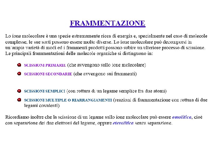 Sorgenti di ioni In base al tipo di sorgente utilizzata la ionizzazione primaria del campione viene realizzata in vario modo. Le tecniche più utilizzate sono: 1) impatto elettronico (E. I. ) 2) ionizzazione chimica (C. I. ) 3) electrospray (E. S. I. )