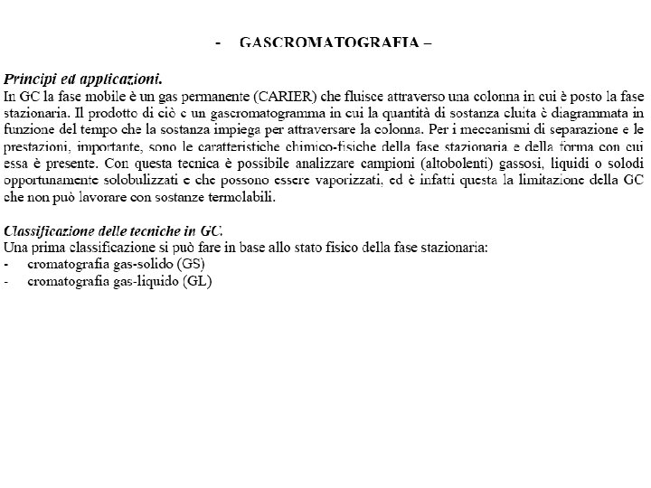 Sistemi di introduzione del campione Le tecniche di ionizzazione disponibili permettono l'interfacciamento allo spettrometro di massa di numerosi sistemi di introduzione del campione. I campioni solidi volatili possono essere introdotti nella camera di ionizzazione per impatto elettronico attraverso una sonda riscaldabile a tenuta di vuoto. Prodotti non volatili (ad esempio proteine) possono essere sciolti in un solvente adatto ed analizzati con un sistema di ionizzazione a pressione ambiente, ad esempio con la tecnica termospray. Particolarmente interessante e' l'interfacciamento con un sistema cromatografico. In gas-cromatografia, l'effluente da una colonna capillare puo' essere inviato direttamente nella camera di ionizzazione per impatto elettronico. L'effluente da un sistema HPLC puo' essere inviato ad un sistema di ionizzazione chimica a pressione ambiente, termospray o ion-spray, in funzione delle sostanze da analizzare.