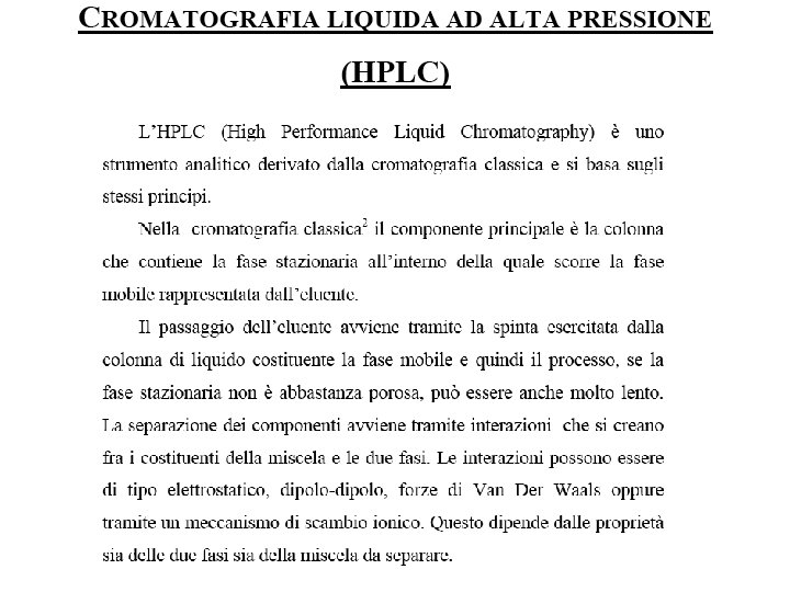 Trappola ionica Gli ioni sono spinti in un dispositivo tridimensionale dove sono accumulati da un campo generato da un quadrupolo. Sono poi espulsi in base alla m/z per applicazione di un determinato campo elettrico secondario. ICR (Ion Cyclotron Resonance)(FTICR) Gli ioni sono tenuti in "trappola" da una combinazione di campi elettrici e magnetici. Gli ioni sono analizzati in situ grazie agli impulsi elettrici creati dagli ioni circolanti e rilevati da rilevatori a piastre posti esternamente alla trappola. La m/z viene determinata grazie ad una operazione matematica ( FT Fourier Transform) che converte le frequenze misurate in m/z. Diagramma di stabilità di Mathieu Una rappresentazione grafica dei valori dei voltaggi DC e AC i quali, quando applicati a una trappola ionica, mantengono uno ione di un dato intervallo di valori m/z in una traiettoria stabile nella trappola. Risoluzione E' il termine che definisce la prestazione di un analizzatore. Questo parametro quantifica come i picchi di due ioni di m/z adiacente possono essere distinti fra loro con definito valore di sovrapposizione. Di solito si ha 10% per uno strumento ibrido e 50% per i quadrupoli. Per i picchi isolati lo stesso termine può essere calcolato dall'ampiezza del picco ad una definita altezza (FWHM)