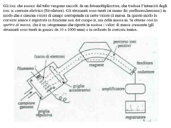 Le fasi L’esperimento di spettrometria di massa consiste dunque nella: ionizzazione di molecole in fase gassosa separazione dei diversi ioni prodotti rivelazione degli ioni prodotti