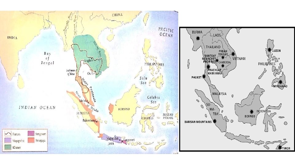 Political South India- Had divided kingdoms, retained Hindu ideas/governing Chola state 850 -1267 then Vijayanagar state 1336 -1565 also took control of Ceylon (Sri Lanka) and parts of SE India SE Asia adopted Indian policies and traditions like Hinduism and Buddhism, but not the caste system, Angkor Wat- created a society which reflected Hindu order (will turn to Buddhism later), great temples built Melaka- trading state, ruling class converted to Islam and influence spread, the only area in SE Asia dominated by Islam