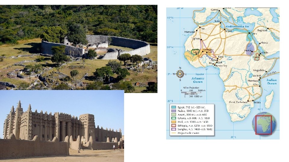 Political Smaller regions based on family ties but regions grew West Africa (sub-Sahara)- Ghana, Mali, Songhay Kingdom of Congo near rainforest Axum in Ethiopia Big cities- Timbuktu, Kilwa , Great Zimbabwe Sundiata founded Mali, Mansa Musa promoted Islam and trade through his pilgrimage to Mecca • Some powerful chiefs overrode kinship networks and imposed authority with military back up (Ife and Benin) • • •