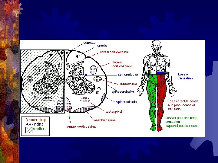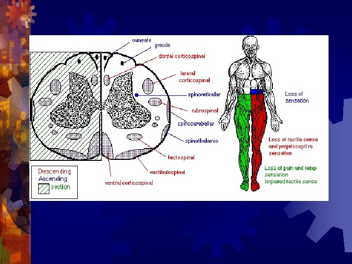 Spinal Cord tracts ® Sensory ® 1. Dorsal column 2. Spinothalamic ® Ascending tracts ® temperature, pressure, pain, light, touch