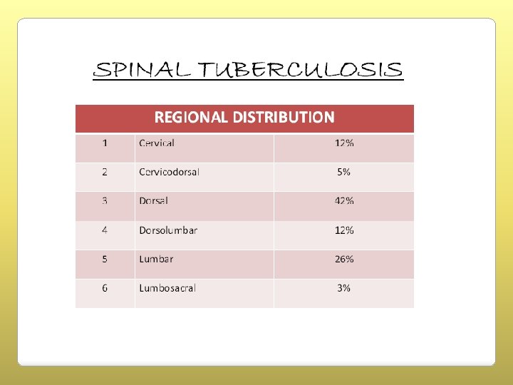 INTRODUCTION • Evidence of spinal TB dates back to Egyptian times and has been documented in 5000 -year-old mummies. • In 1779, Percival Pott published the first modern description of spinal deformity and paraplegia resulting from spinal TB. • According to WHO(2006), about one third of the world’s population is infected by Mycobacterium TB, and 9 million individuals develop TB each year.