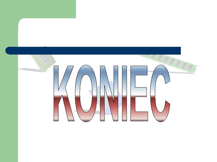 Pamięć l Pamięć w komputerze służy do przechowywania informacji. Rozróżniamy tzw. pamięć stałą (np. pamięć ROM) oraz pamięć ulotną (np. pamięć operacyjna RAM). Pamięć ROM (Read Only Memory) nazywana jest także pamięcią nieulotną. Zachowuje ona swoją zawartość także w czasie wyłączenia komputera. Jest to możliwe dzięki odpowiedniemu podtrzymaniu napięcia przez baterię. Pamięć ta jest zbudowana na układzie scalonym umieszczonym na płycie głównej komputera i służy do przechowywania programów w postaci tzw. BIOS-u komputera. Pamięć RAM (Random Access Memory) nazywana jest pamięcią o dostępie swobodnym lub pamięcią operacyjną. Jest ona niezbędna w komputerze do szybkiej wymiany danych. Zarządzaniem pamięcią zajmuje się obecny w komputerze system operacyjny. Pamięć RAM jest także określana jako pamięć ulotna, ponieważ jej zawartość zanika w przypadku wyłączenia komputera lub jego restartu. Obecnie najpopularniejsze są pamięci SDRAM w postaci 168 pinowych układów na złączu typu DIMM. Podstawowym parametrem układów pamięci RAM jest tzw. czas dostępu do informacji. W obecnie dostępnych pamięciach czas ten wynosi 8, 7 i 5 nanosekund. Nowszym rodzajem pamięci operacyjnej są pamięci DDRAM.
