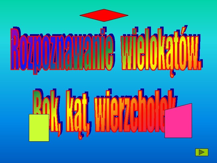 TU SĄ CZWOROKĄTY! TU SĄ TRÓJKĄTY! TU SĄ PIĘCIOKATY ! TU SĄ SZEŚCIOKĄTY! Czworokąty mają cztery kąty i cztery boki. Trójkąty mają trzy kąty i trzy boki. Pięciokąty mają pięć kątów i pięć boków. Sześciokąty mają sześć kątów i sześć boków WSZYSTKIE TE FIGURY NAZYWAMY WIELOKĄTAMI !!!