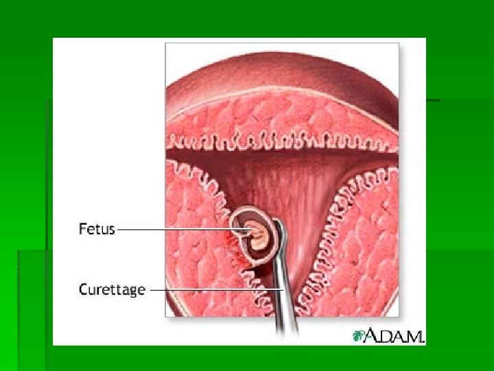 Vzroki § Pri večini parov, ki izgubijo otroka, vzrok ni jasen in kasneje se jim rodi zdrav otrok. § rdečke § listerioza § klamidijsko vnetje § hujša nepravilnost v razvoju ploda ali nepravilnost maternice npr. : miomi ali polipi § nesposobno maternično ustje § sladkorna bolezen, epilepsija, astma, bolezni ledvic ali visok krvni tlak