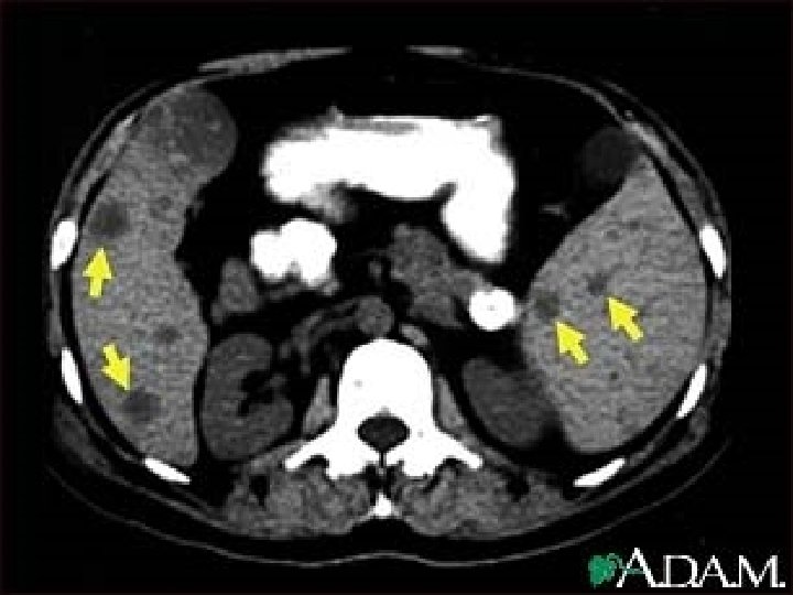 Congenital Abn of Spleen 1 -Agenesis: rare. 2 -Spleniculi: 10 -30% of population. Hilum (50%), splenic vessels & tail of pancrease (30%), mesocolon & splenic ligaments (20%). **Failure to remove spleniculi during splenectomy…. . persistant disease. 3 -Hamartomas: rare 4 -Non parasitic splenic cyst: 1 -True, dermoid, mesenchymal. 2 -False, trauma 3 - Pseudocyst after pancreatitis.