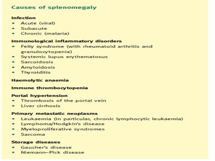 Splenomegaly & Hypersplenism: Clinical syndrome 1 -Splenic enlargement. 2 -Any combination of anaemie, leucopenia or thrombocytopenia. 3 -Compensatory bone marrow hyperplasia. 4 -Improvement after splenectomy.