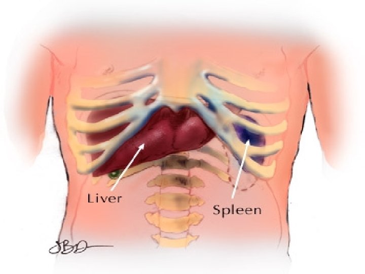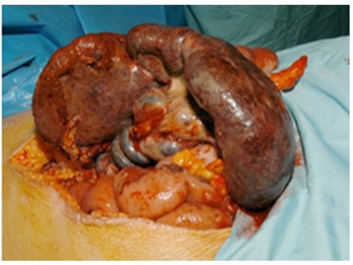 Consider it : Splenic Rupture 1 -Bunt abdominal trauma LUQ (RTA, Fall, . . . ). 2 -High Risk: diseased or enlarged spleen(rupture of a malarial spleen in trivial injury). 3 -Fractures of 9 th, 10 th, 11 th left ribs. 4 -Iatrogenic. Presentation: 1 -Succumbs rapidly from massive haemorrhage 2 -Initial shock, recovery, signs of late bleeding: Blood loss+tamponade+further bleeding. Reminder are, general signs of internal haemorrhage, local LUQ peritonitis signs, Kehrs sign+FAST US & CT. 3 -Delayed rupture: uncommon with these days scan use In ER.