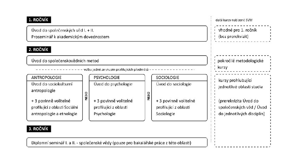 Profil. předměty (v distanční výuce) Úvod do sociokulturní antropologie Úvod do sociologie Úvod do psychologie Migrace a postmigrační procesy Významní představitelé sociologického myšlení Vývojová psychologie Romové a diskurz marginalizace Subkultury mládeže Mimoevropské hudební kultury II. Moderní společnosti a sociologické teorie Sociologie institucí Sociologie vědění Sociální nerovnosti Psychologie celoživotního vývoje Psychologie osobnosti Evoluční psychologie Sociální psychologie Sociologie spotřeby Vědeckovýzkumná propedeutika v psychologii Hudba židovských komunit Skupiny, organizace a sociální změna: vybraná témata ze sociologie organizace Psychofyziologie a neuropsychologie Člověk, náboženství a společnost Sociologie konfliktu Klasikové sociokulturní antropologie Sociologie životního prostředí Základy etnologie I. Gender a společnost Vybrané problémy urbánní antropologie Sociologie občanské společnosti Politiky identit Sociologie rodiny Antropologie a prostor Ekonomická teorie v kontextech Cesty k postmoderní antropologii Politiky paměti