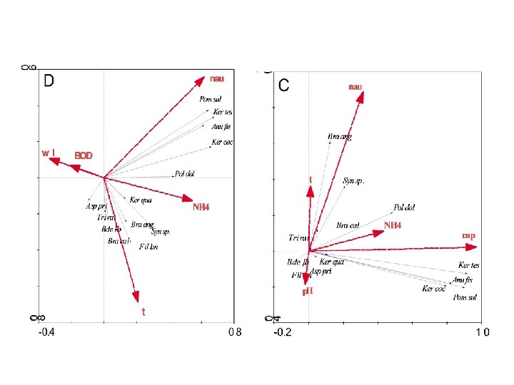 SLEDOVANÉ CHEMICKOFYZIKÁLNÍ FAKTORY • NO 2 -, NO 3 -, NH 4+, Ca 2+, Mg 2+, Cl-, Na+, K+, SO 42 -, Pcelk, p. H, konduktivita, teplota, kolísání vodní hladiny, BSK 5, průhlednost