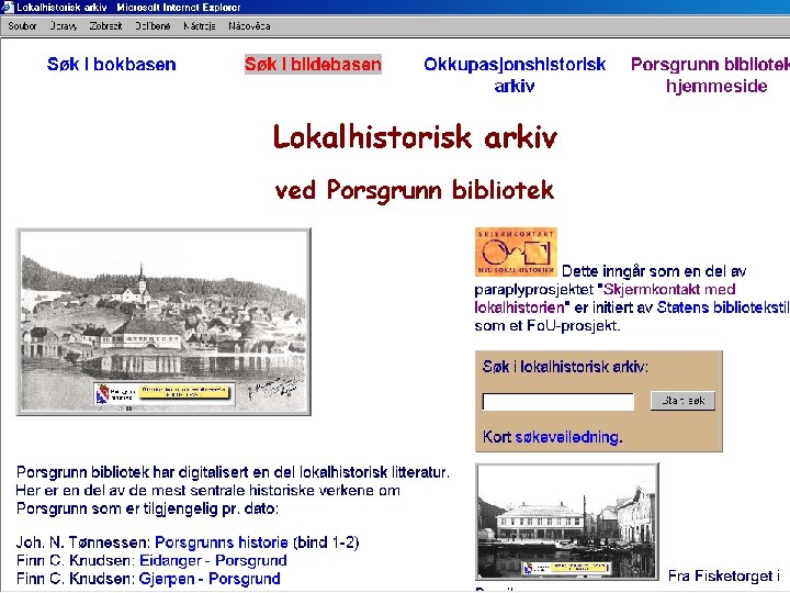 Norsko • Místní historie v Austevollu (Austevoll) • Bygdebok i nettet (Fusa) • Framtidas medier for bevaring av fortidas kulturary (Porsgrunn) • Zeptej se webu na místní historii – souborný katalog provincii Sogn og Fjordane a referenční služby z archivu, knihovny a muzea této provincie (Sogndal) • Bádání a dobrodružství (Stavanger) • Data o Telemarku na internetu (Telemark) • Místo, kde žiji - reflexe Norska a světa (Aal)