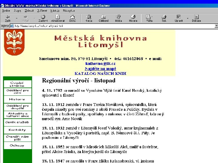 A na závěr databáze výročí regionálních osobností v ČR • REGO (Vědecká knihovna v Olomouci) • LANius (např. knihovny v Opavě, Břeclavi, Plzni, Táboře, Havlíčkově Brodě) • Významné zlínské osobnosti (krajská knih. F. Bartoše) • Regionální výročí (Měk Litomyšl)
