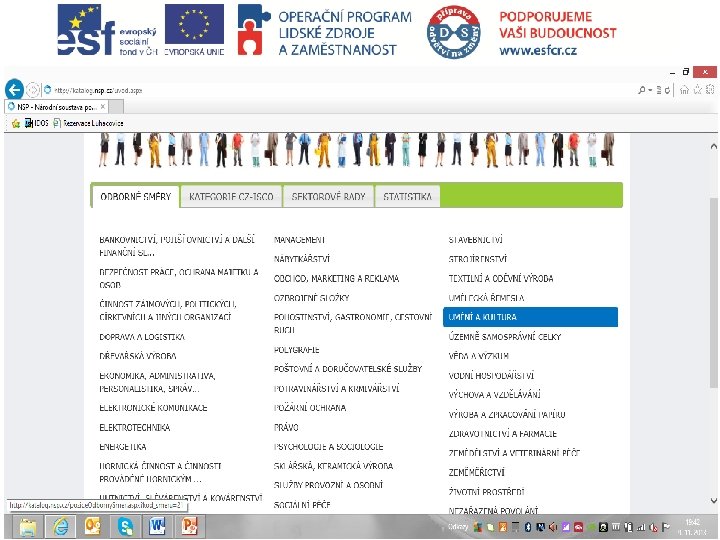 NSP • Prostřednictvím Sektorových rad monitoruje a eviduje požadavky na výkon jednotlivých povolání na trhu práce • Sektorové rady pro všechny sektory národního hospodářství a jejich pracovní skupiny tvoří popisy požadavků pro jednotlivá povolání, typové pozice apod. • Vzniká otevřená, všeobecně dostupná databáze povolání, která odráží
