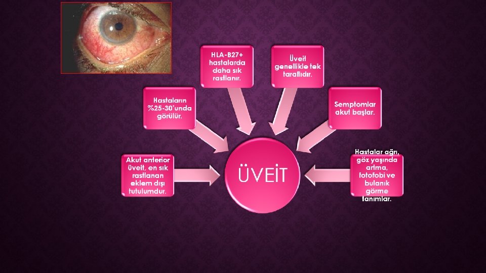 SPA. ’de EKLEM DIŞI BULGULAR ÜVEİT/KONJUNKTİVİT DERİ BULGULARI DAKTİLİT ÜRETRİT/SERVİSİT HLA B 27 (+) PSÖRİYAZİS BENZERİ
