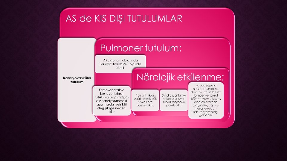 AĞRININ KONTROLÜ SEKONDER AMİLOİDOZ GELİŞİMİNİN ENGELLENMESİ OMURGADA ŞEKİL BOZUKLUĞU OLUŞMASININ ENGELLENMESİ TEDAVİ HEDEFLER İ İNFLAMASYONUN BASKI ALTINA ALINMASI KARDİYAK TUTULUMUN ENGELLENMESİ OMURGANIN HAREKETLERİNİN KORUNMASI PULMONER TUTULUMUN ENGELLENMESİ