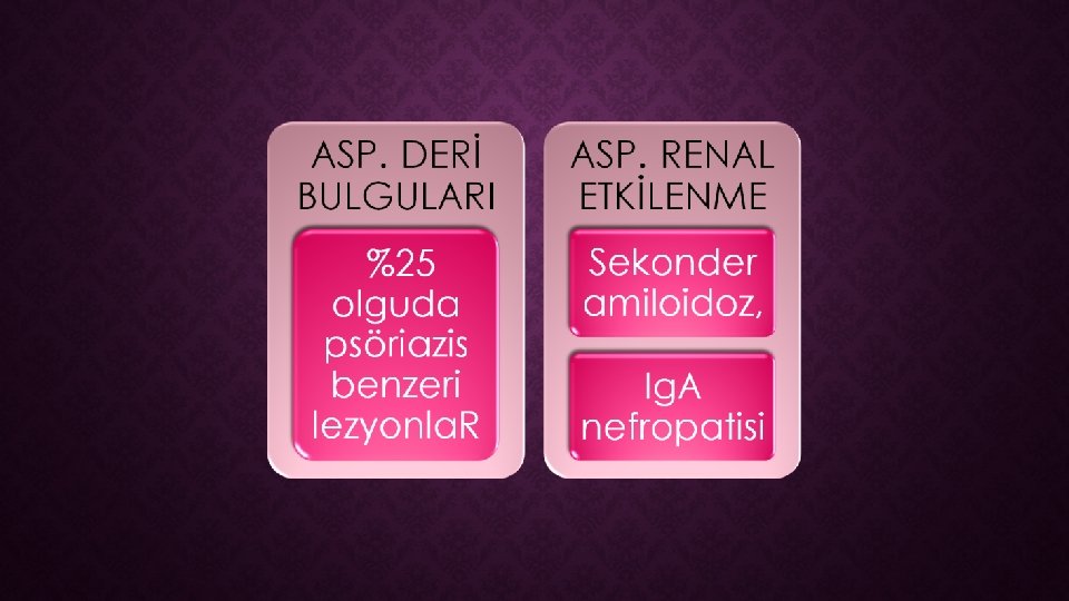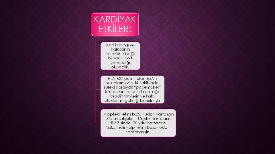 PROGNOZ ⦿ Semptomlar Sürekli Veya Aralıklı Olarak Yıllarca Devam Edebilir. Bazı Ağır Vakalarda, Aksiyal Ve Periferik Eklemlerde Füzyon Gelişmesine Neden Olabilir. ⦿ Aort Yetmezliği, ⦿ Amiloidoza Bağlı Kronik Böbrek Yetmezliği, ⦿ Atlanto-aksiyal Subluksasyon Ve ⦿ Medulla Spinalis Basısı…… Ölüm Nedenleridir. ⦿ Kötü Prognoz: ⦿ ⦿ ⦿ ESR>30 mm/Sa, Kalça Artriti, Bel Omurlarında Hareket Kısıtlılığı, Oligoartrit, 16 Yaşından Önce Başlaması; ( 3 Kriterin Varlığı )