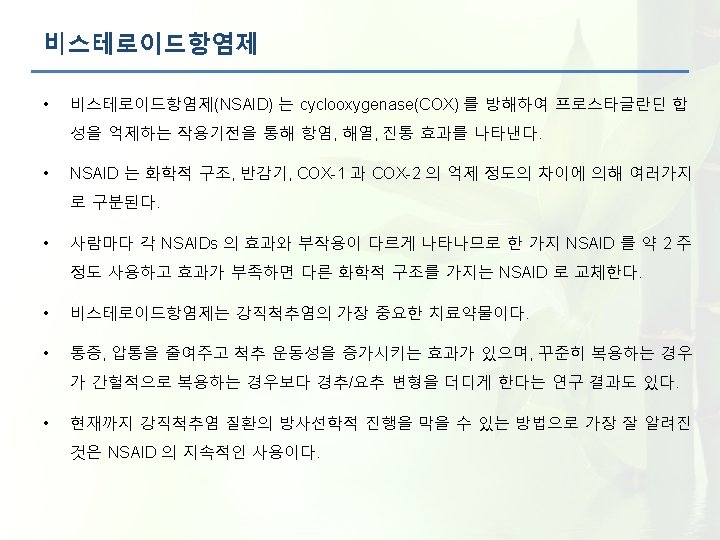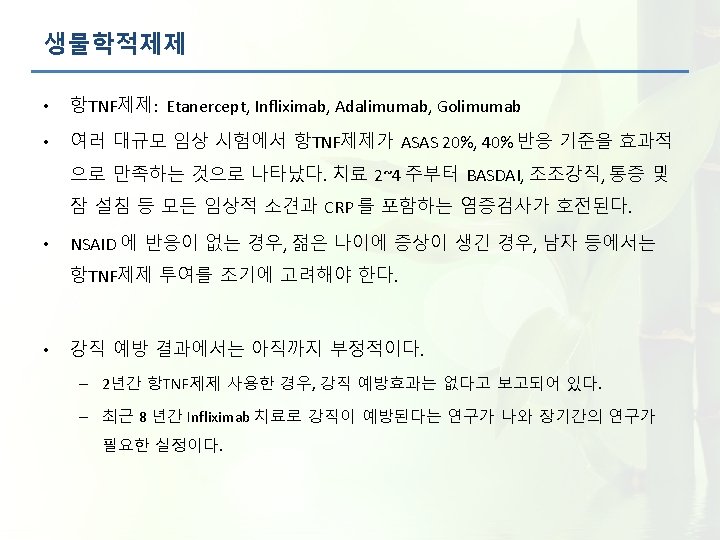 강직척추염의 치료 ASAS/EULAR Recommendations Zochling J et al. Ann Rheum Dis 2006; 65(4): 442 -52