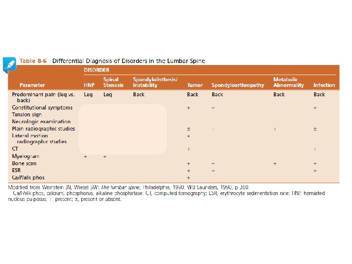 Natural history • Unilateral pars defects almost never slip • Progression of spondylolisthesis slows over time • In adults – Radicular symptoms • Narrowing of neural foramen and compression of exiting L 5 root – 3 phases of degenerative spondylolisthesis (Kirkaldy-Willis) 1. Dysfunction 2. Instability 3. Restabilisation