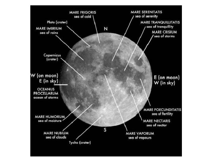 Surface Features Maria - oceans or seas. (Galileo thought they were oceans when he saw them through his telescope. ) Maria are large, dark, flat areas that are probably the result of lava flows in the Moon’s past.