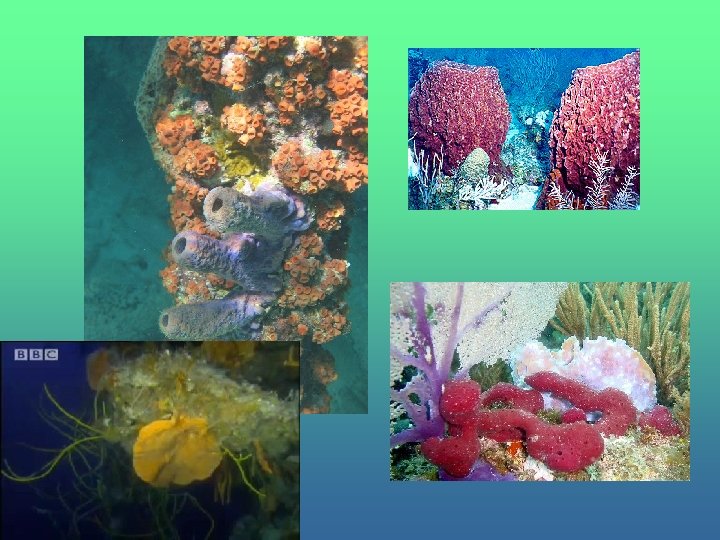 Details n n 5, 000 -10, 000 species All are multicultural or a group of specialized cells No tissue or organs Sessile : at the bottom of the sea These are deep sea glass sponges retrieved at 1400 feet. Glass sponges are typically very fragile and rarely hold their shape when transported to the surface.