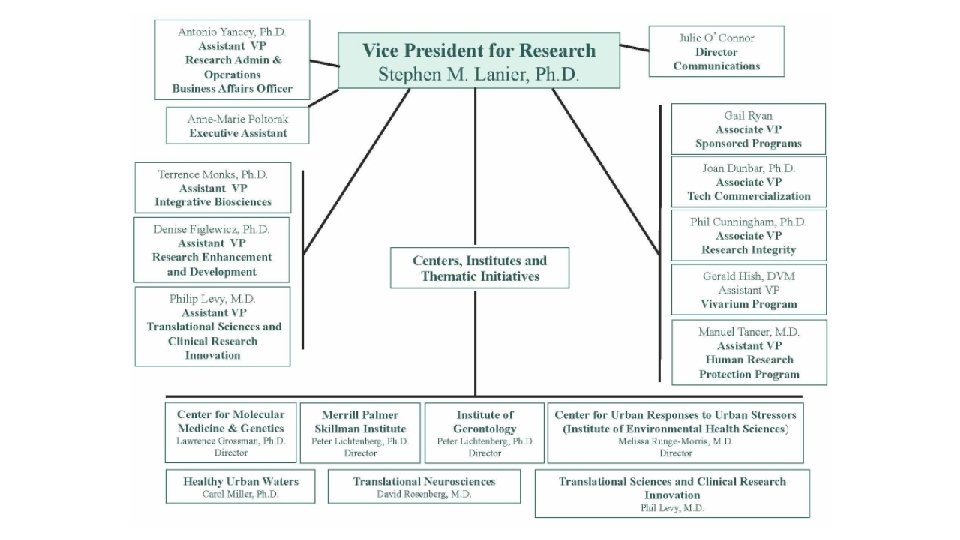 Office of the Vice President for Research ü Sets research expectations and directions ü Promotes integrity in the research enterprise ü Advocates for research and graduate education ü Assists in administering certain funds made available to provide: o Startup support for new faculty o Matching for external grants o Seed money for new projects that have the potential to attract funds from external sponsors