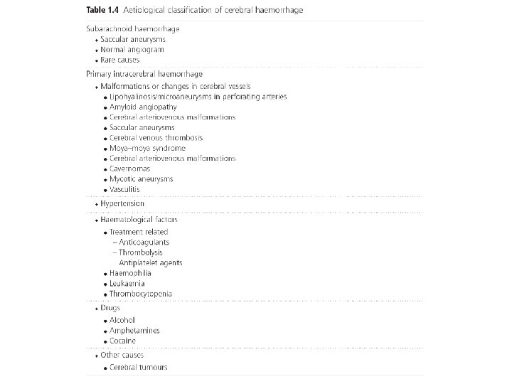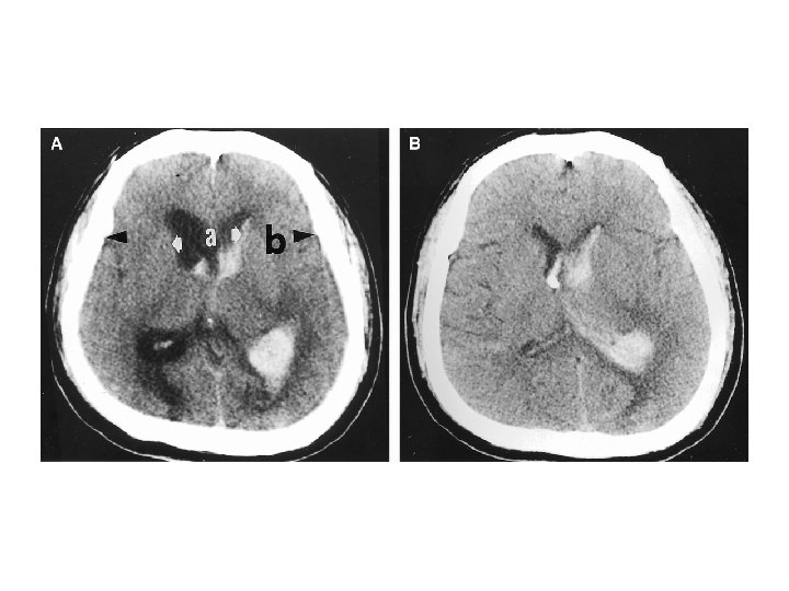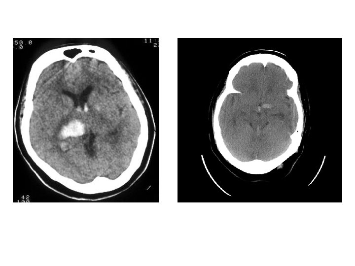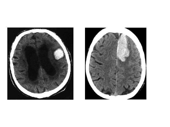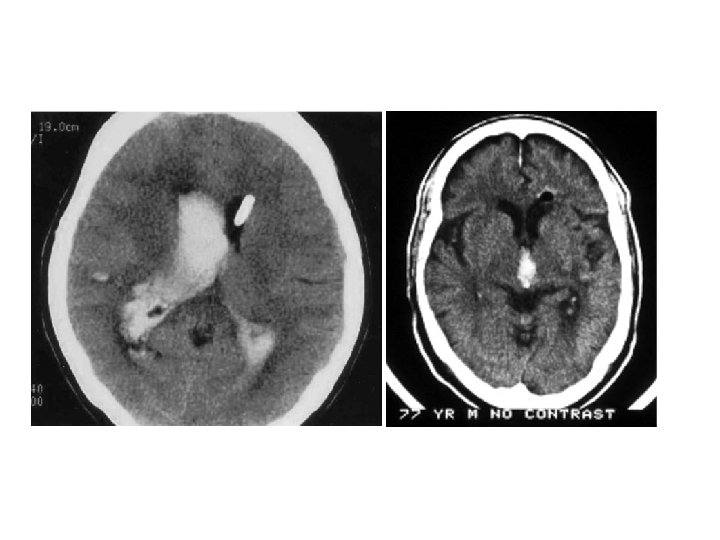• Hematoma enlargement or hematoma growth - increase in the volume of hematoma, can occur several hours after stroke onset, frequently associated with neurologic deterioration (66%). * initial CT scan < 3 hrs (35%) * at 3 – 6 hrs (16%) * at 6 – 12 hrs (15%) * at 12 – 24 hrs (6%) - Predisposing factors: history of brain infarction; liver disease; high blood glucose ( >141 mg/dl) or Hb. A 1 C ( >5. 1%); high systolic
