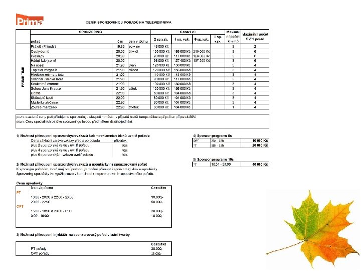 SPONZORING PROGRAMU • 10 sec. sponzorský vzkaz před: • Cena: 40 000 Kč/ 1 vzkaz