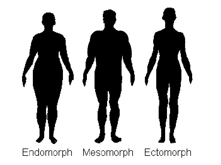 Mezomorfi • • • Bu bileşen yönünden dominant olan tiplerin kas ve kemik sistemi gelişmiştir. Atletik görünümlü, dış hatları köşeli tiplerdir. Uzun ve kuvvetli bir boyun vardır. Karına oranla geniş bir göğüs sözkonusudur. Bu yapıya geniş omuzlar eşlik eder. Kollar ve bacaklar kaslıdır. Eklemler ve parmaklar kalın ve iridir.