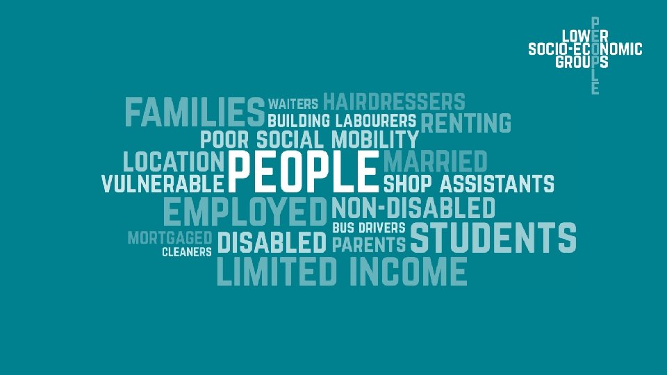 Diversity within Low Socio Economic Groups • Low Socio Economic Group is not homogenous – it is a diverse group of communities and individuals (12 m people!) • We know there are inequalities within this group in comparison to other groups within the population from an economic, social and sport perspective • • People from lower socio-economic groups are diverse be it their age, gender, ethnicity or whether or not they have a limiting disability How best we can include communities in design and delivery of activity. • Our empathy and compassion is a key element of gaining that understanding