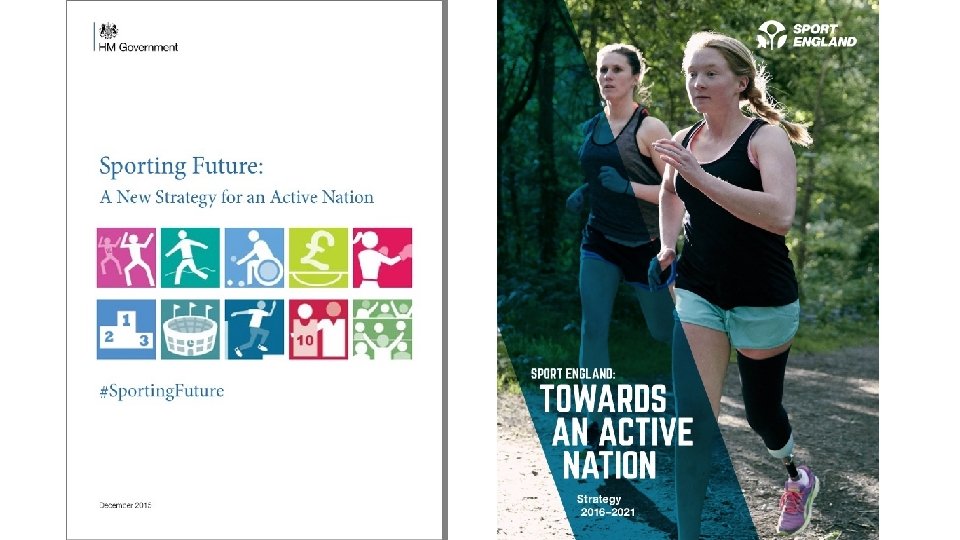 The reasons why – ‘outcomes’ PHYSICAL WELLBEING Increase in population meeting the CMO guidelines for physical activity Decrease in population that are physically inactive MENTAL WELLBEING INDIVIDUAL DEVELOPMENT SOCIAL & COMMUNITY DEVELOMENT ECONOMIC DEVELOPMENT Improved subjective wellbeing Increased levels of perceived self-efficacy Increased levels of social trust Economic value of sport to the UK economy