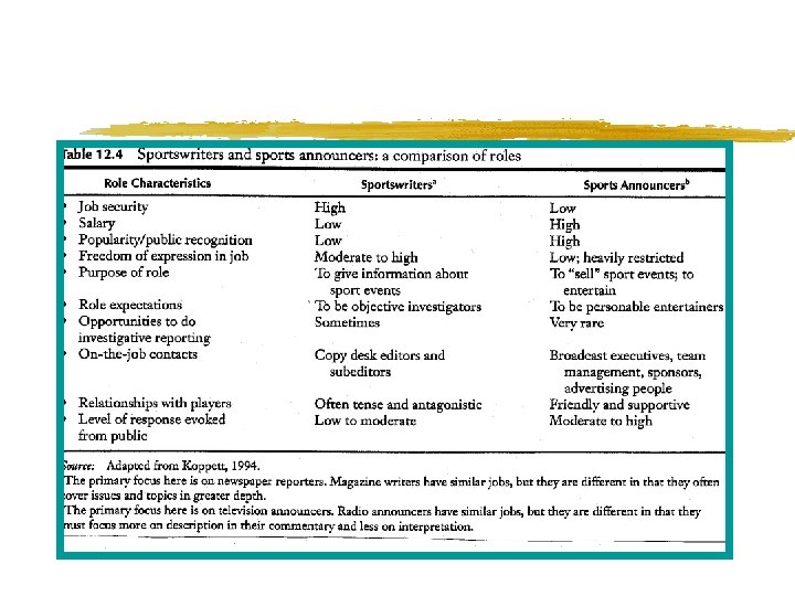 Comparison of Sportswriters and Announcers Sportswriters X Work behind scenes X Seldom recognized X Low salaries; paid by publications X Low regulation by sport management X Job focuses on providing information Announcers X Celebrity status X Public recognition X High salaries; often paid by management X Comments regulated by management X Job focuses on “selling” the sport