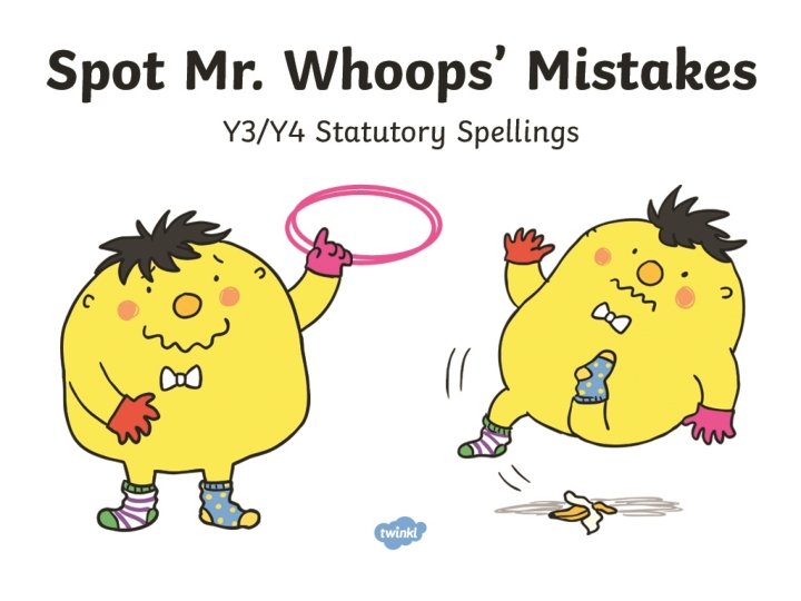 Mr. Whoops needs to practise these words: particular learn experiment material peculiar possible ordinary separate appear mention actual height There were some tricky words in this one. keep trying! I’ll