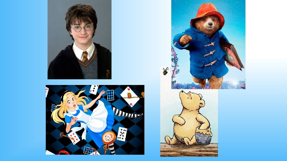 Literature - books • J. K. Rowling “Harry Portter” • A. Milne “Winnie-the-Poor” • M. Bond “ Puddington” • L. Carroll “Alice’s Adventures in Wonderland”