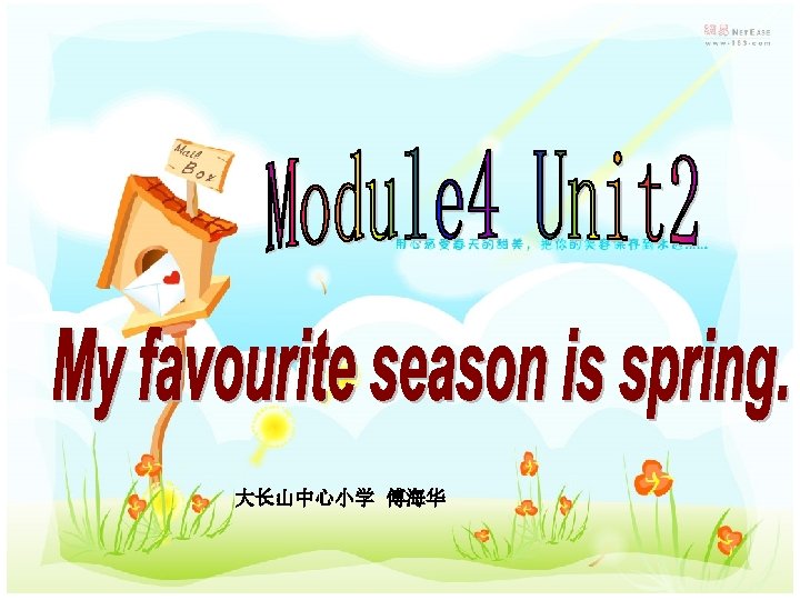 spring My favourite _______ season is ____. It’s warm _____. There are __________. flowers on the trees ducks in the river I can see __________.