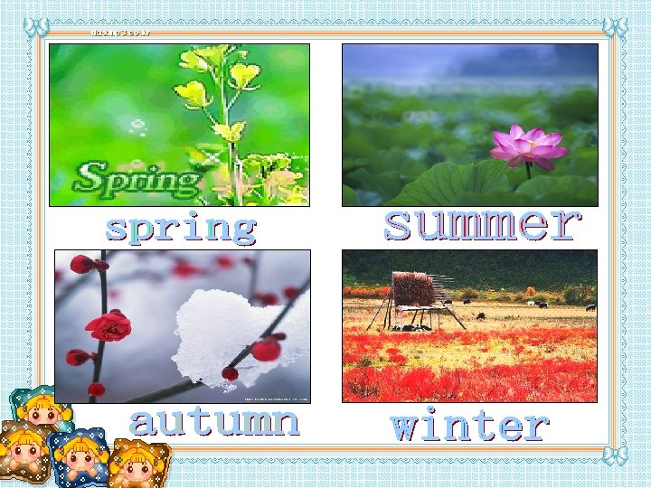 Homework: 必做: 1、Write the words and sentences. 2、Describe your favourite season to your friends after class. Then write them down. 选做: Recite the text after class.