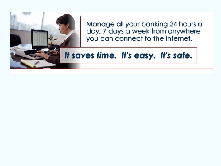 INTERNET BANKING (IB) • Banking is a natural service for the Internet: – Intangible – Information-based • 85 % of UK bank customers use IB • Take-up is slow in many countries • Saudi Arabia is 25 th ranked country by GDP • Only 20 % of Saudi Arabia’s bank customers use IB (Grais & Kantur, 2003)